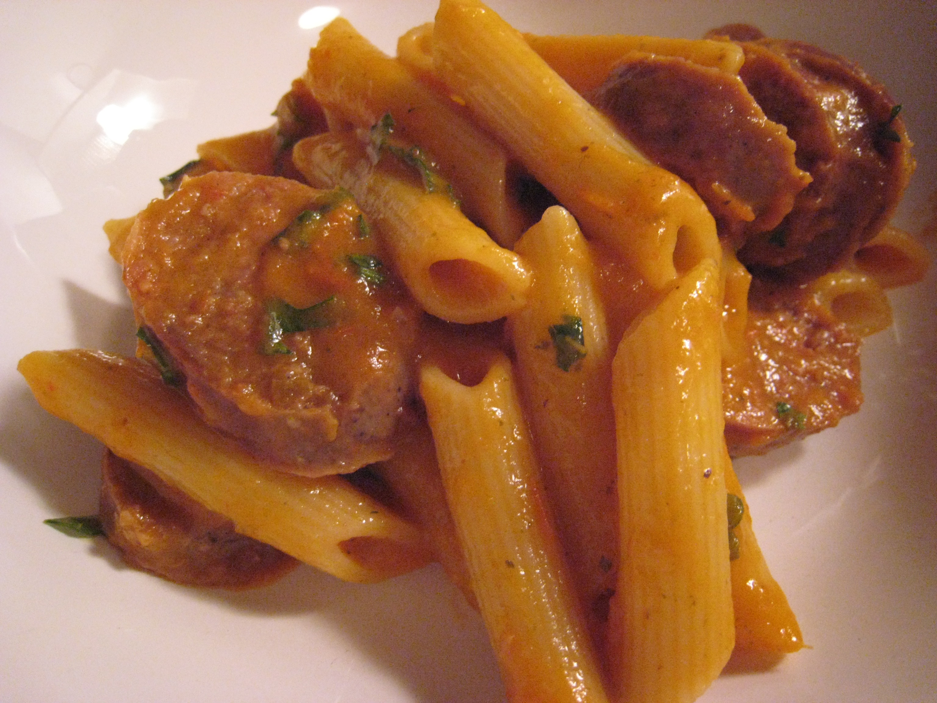 To this, we can only add the very best that we have. I took some of the hot Italian beef sausage from our CSA and roasted it in a 375° oven for about 20 minutes. Maybe it was less, but I lost track of time licking the remainder of the sauce left on the sides of the container.