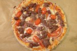 6. Bake in the oven for 15 minutes, longer if you want a more browned crust. I kind of prioritize though: absent the hardware and capability to get a really excellent crust, I aim for just really excellently cooked beef. Shower your finished pie with Maldon salt, slice, and serve.