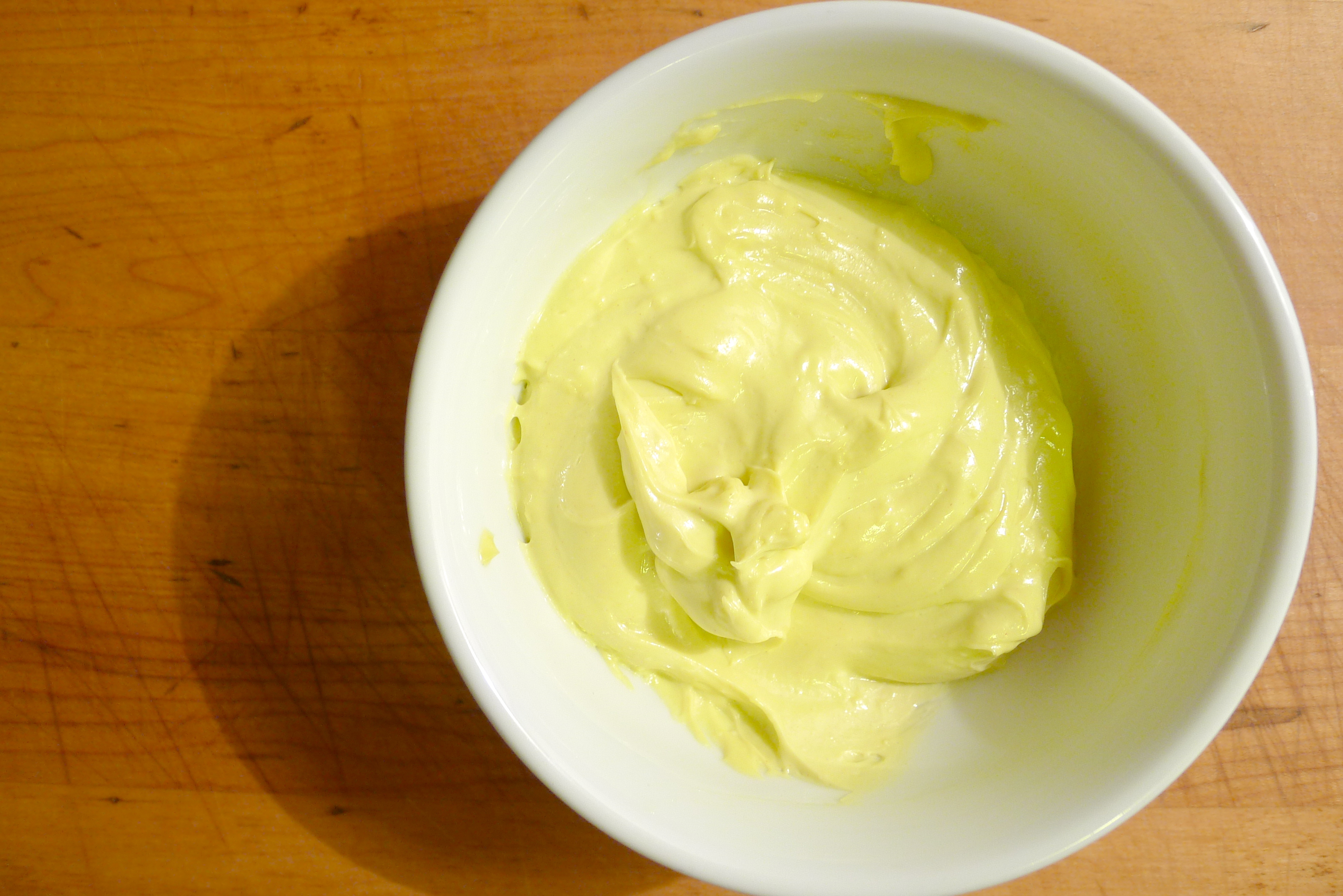 A bright and vibrant olive oil gives the mayonnaise a greenish caste. June 12, 2011 Share this: Click to email a link to a friend (Opens in new window) Email Click to print (Opens in new window) Print Click to share on X (Opens in new window) X Click to share on Pinterest (Opens in new window) Pinterest Like Loading...