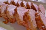 Brush the tenderloin with approximately 1 tablespoon of glaze. Roast it until a thermometer inserted in thickest part of tenderloin registers 130 degrees. Brush it with another tablespoon of glaze, and continue to roast it until the thickest part of tenderloin reaches 135 to 140 degrees, about 2 minutes more.