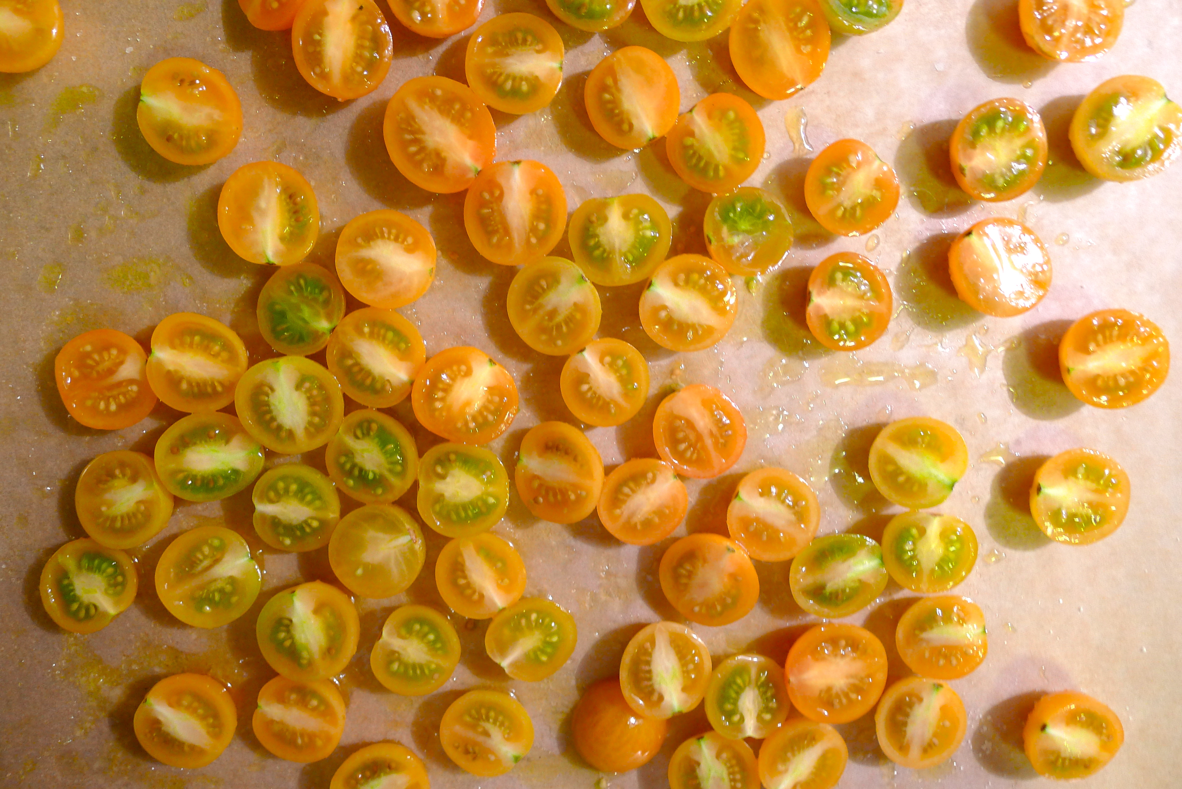 Sun Gold tomatoes ready for the oven. September 20, 2011 Share this: Click to email a link to a friend (Opens in new window) Email Click to print (Opens in new window) Print Click to share on X (Opens in new window) X Click to share on Pinterest (Opens in new window) Pinterest Like Loading...