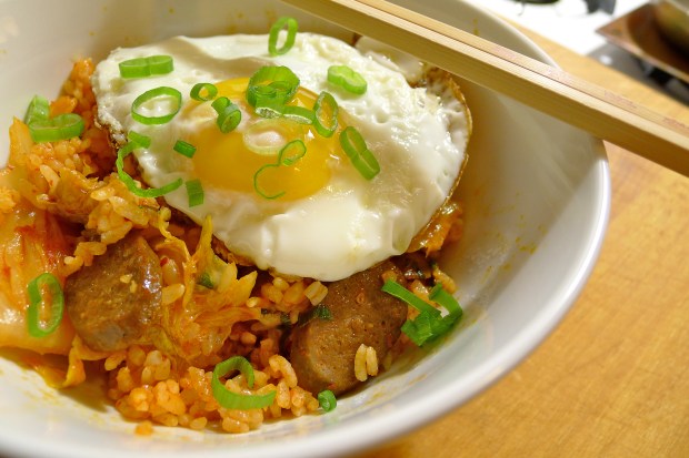 CSA hot dogs. Kimchi. Egg. Korean pepper paste. Oh, and did you say fried? What’s not to like?! (But I have to admit, I’m one of those non-Asians who loves even plain old steamed rice.)