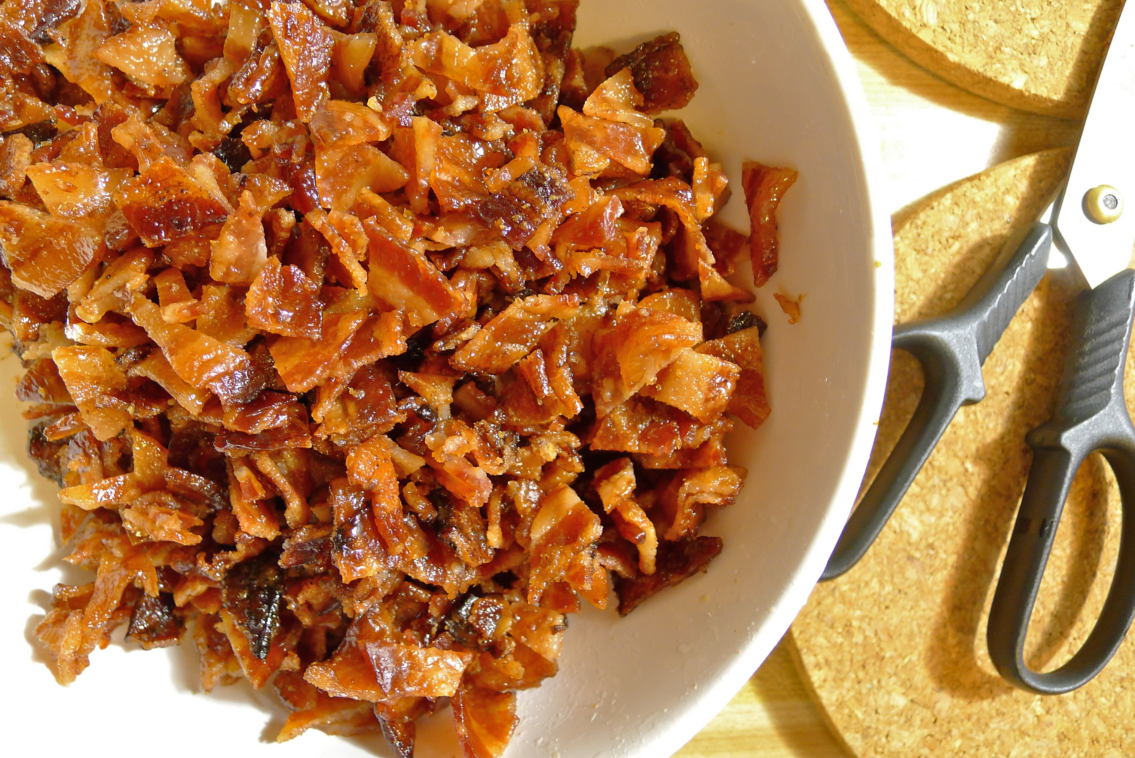 Use scissors to cut the bacon into small pieces. October 26, 2012 Share this: Click to email a link to a friend (Opens in new window) Email Click to print (Opens in new window) Print Click to share on X (Opens in new window) X Click to share on Pinterest (Opens in new window) Pinterest Like Loading...