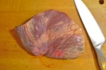1. The first thing you will need to do is trim the heart. You basically want to remove all the fat, the membranes, and any and all vessels including the aorta. It may be a little disheartening (no pun intended) to have to discard all those trimmings, but you really only want the tasty bits. For this, you will need a very sharp knife.