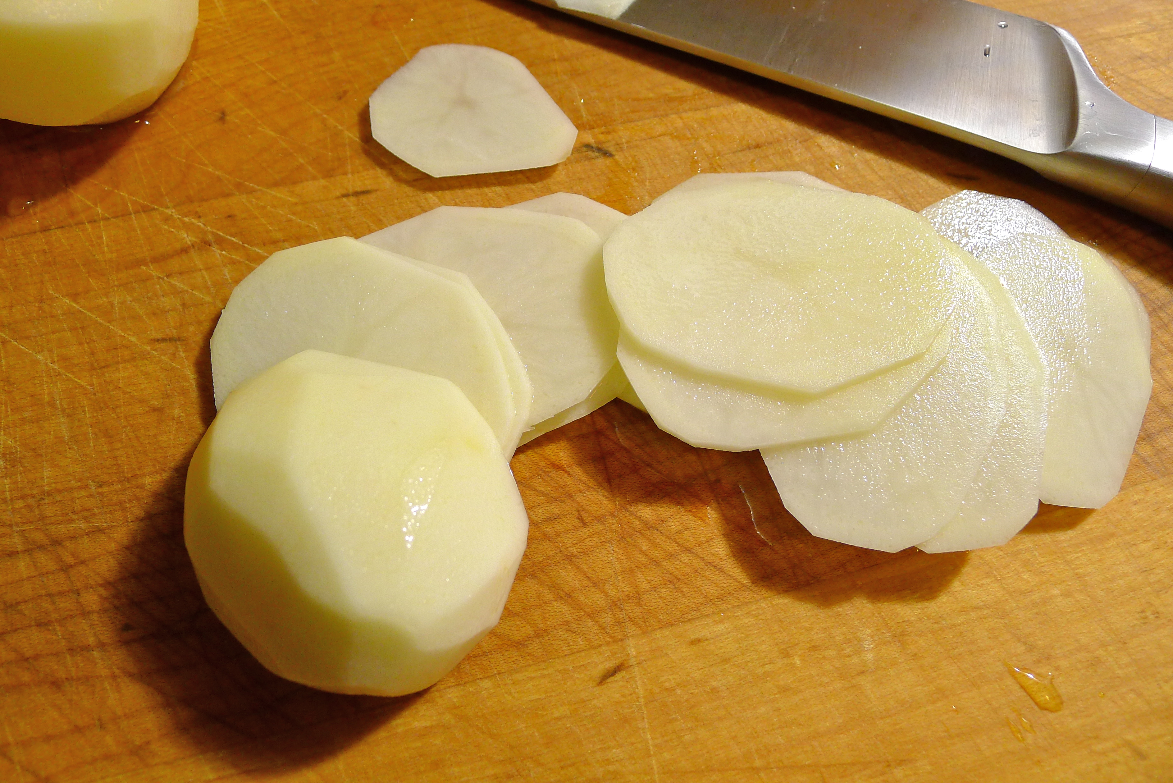 Cut the potatoes into 1/8-inch slices. December 1, 2013 Share this: Click to email a link to a friend (Opens in new window) Email Click to print (Opens in new window) Print Click to share on X (Opens in new window) X Click to share on Pinterest (Opens in new window) Pinterest Like Loading...