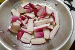 2. Sauté the kernels and the chopped serrano chili in a large skillet or cast iron pan with about 1 tablespoon of butter and 1 tablespoon of olive oil.