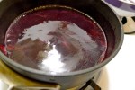 10. In a small saucepan, combine the strained grapes with the sugar and the lemon juice. Set the pan over medium heat until it begins to boil. Skim any foam that you see off of the top. When it begins to boil, lower the temperature until the sauce is just barely at a simmer (be careful that it doesn’t boil over). Keep the sauce at barely a simmer until it has thickened and reduced to a syrupy consistency. When it gets to that point, turn off the heat and let the sauce cool.
