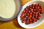 2. Butter a baking dish and arrange the cherries in a single layer on the bottom.