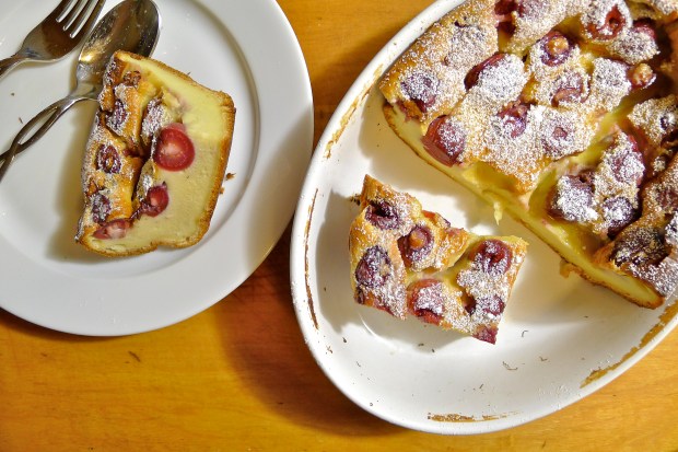 At home, I reliably depended on that recipe any time I needed to deliver a perfect clafoutis. It worked every time — even when I was a little short or too generous with the cherries, and even when I ran low on sugar, flour, milk or all three.