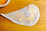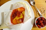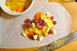 It’s true that this month’s Daring Kitchen assignment wasn’t really a challenge for me since cooking en papillote is one of my favorite cooking methods. On this blog, I have posted a recipe for roasted tiny potatoes en papillote and roasted salmon with mango and Bird’s Eye chiles. However, it was completely new for me to use this cooking method to make a something sweet instead of something savory.