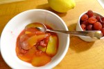 This dessert recipe was inspired by one that I saw months ago on Elle à table, the companion cooking site of French Elle Magazine. I kept the primary components — parchment, peaches and raspberries — and changed the rest. The original recipe has you peel the peaches. However, if the peaches are nice and ripe, this step seems fussy. It also seems like it would be a big waste of precious juice. The Elle à table recipe also calls for lime zest and juice, whereas I only used the zest for fear that the extra juice would have made the dessert too watery. Instead of a lime, I used a lemon. I also swapped out the cinnamon for vanilla bean, and shortened the cooking time so that the fruit would stay more intact.