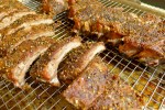 3. After drying the ribs with paper towels, rub the seasoning mix into both sides of the rack. Sprinkle both sides with salt and arrange them on the wire rack.