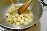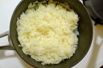 2. When the rice is done, fluff it with a fork. Evenly sprinkle the rice with the cheese and stir everything together. The Parmesan should be evenly distributed throughout the rice. Adjust the seasoning with salt and white pepper. Cover the rice again while you prepare the almonds.