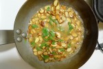 3. In a small frying pan, melt the remaining 3 tablespoons of butter over medium to medium-low heat. Once the butter has melted, add the almonds. Turn the almonds in the foamy butter until they begin to brown and turn golden. Remove the pan from the heat. VERY CAREFULLY add the lemon juice by pouring it over the back of a wooden spoon into the almonds. Stir in the oregano leaves. Adjust the seasoning.