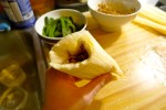 Bayless’s recipe should make about 16 red chili pork tamales, but given that I didn’t have much meat to work with, I ended up with only twelve. His tamal dough recipe should be enough for 26 tamales. As I had to add more flour to make up for the extra liquid that I added, I ended up with 29 tamales. Pretty accurate, Rick!